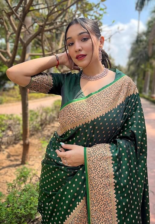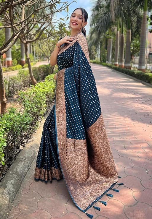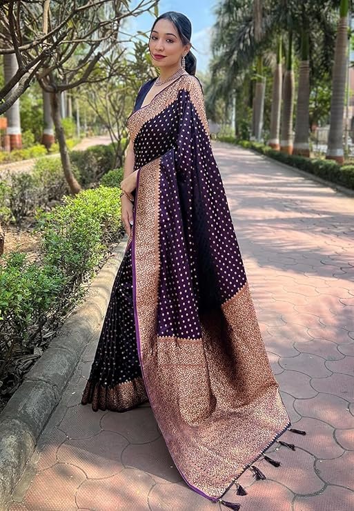 Indulge in the timeless elegance of this Pure Banarasi Katan Silk Saree. Adorned with intricate motifs all over the body, this saree exudes a luxurious charm. The rich woven Banarasi zari pallu adds a touch of opulence, while the zari woven border enhances its beauty. Paired with a plain running blouse, this saree is a perfect choice for special occasions and celebrations.