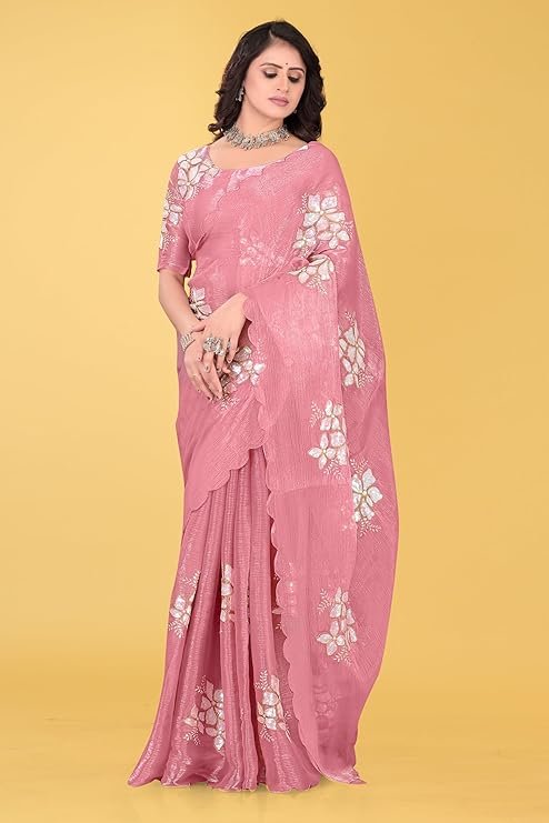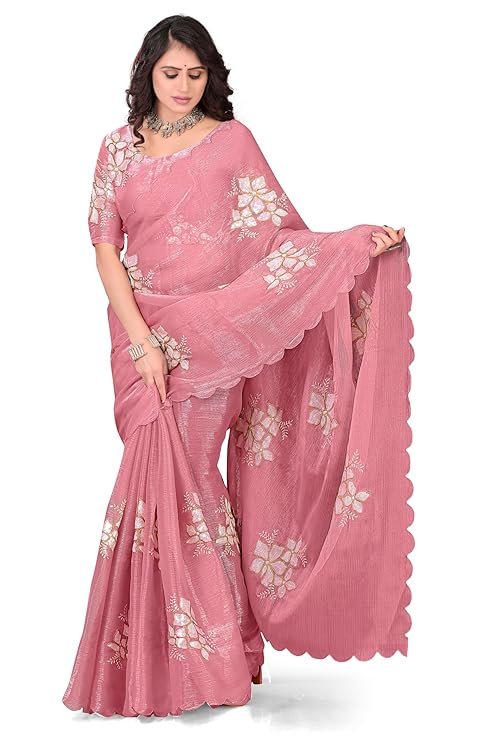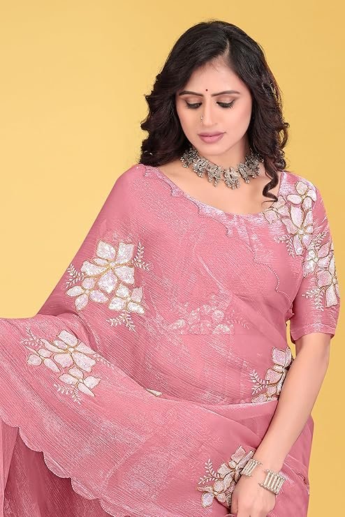 Elevate your elegance with this exquisite embroidered saree, a perfect blend of traditional artistry and contemporary style. Crafted from luxurious fabric, this saree features intricate embroidery that showcases skilled craftsmanship. The delicate patterns are embellished with shimmering sequins and thread work, adding a touch of opulence to the ensemble.