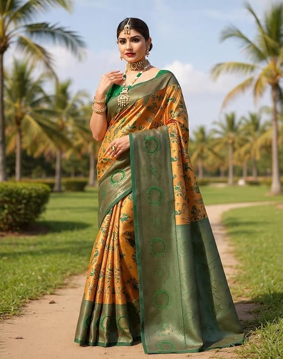 Add a touch of royalty and elegance to your ethnic wardrobe with this Yellow Karnataka Mysore Silk Zari Woven Saree, designed for women who appreciate luxury and traditional craftsmanship. Made from premium-quality Mysore silk, this saree offers a soft, smooth, and comfortable feel, ensuring effortless draping and a graceful silhouette.