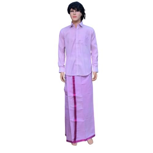 SPACO WORK HUBS Men’s Traditional Shirt and Dhoti Set – Cotton Blend, South Indian Wear for Festive & Casual