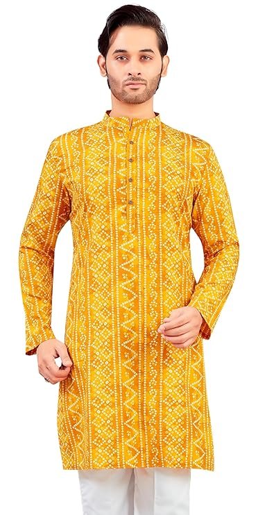 - Yellow bandhni print. Soft Polyester wash-n-wear fabric